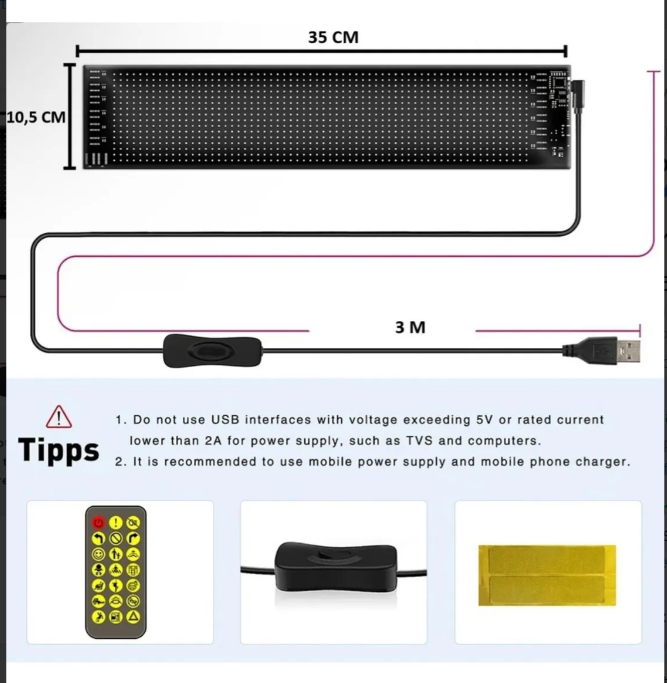 PANEL LED MATRIX FLEXIBLE CON CONTROL 10 X 35 CM