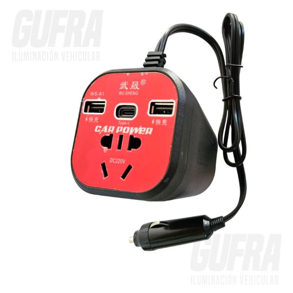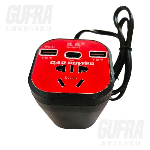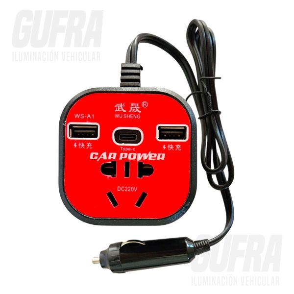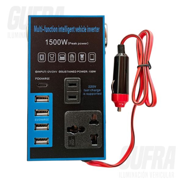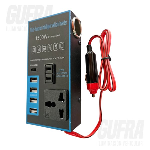 CONVERTIDOR DE CORRIENTE 12V A 220V HASTA 1500 WATTS CON TOMA ENCENDEDOR