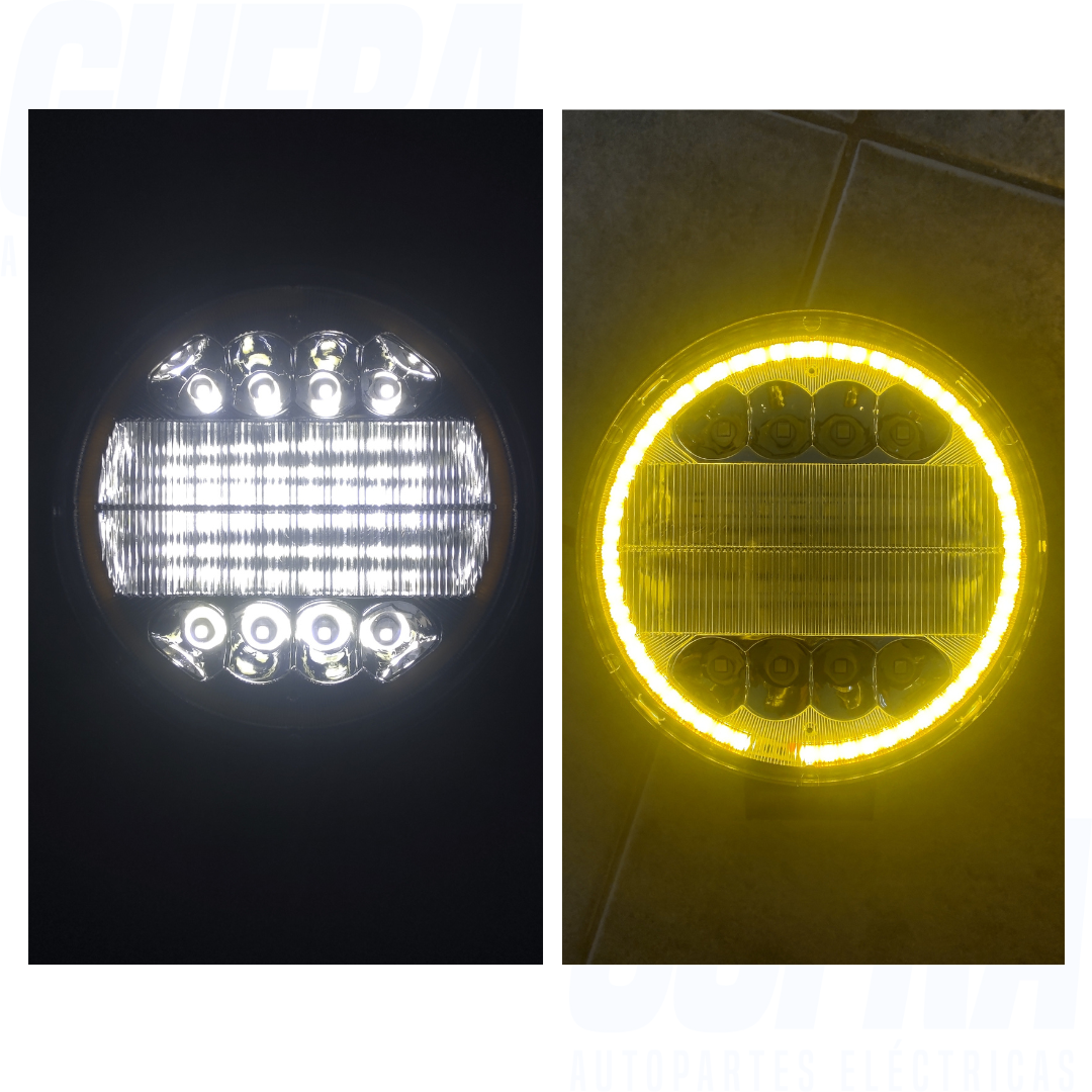 JUEGO FAROS LED REDONDO 12 Y 24V 100 WATTS BLANCO Y AMARILLO