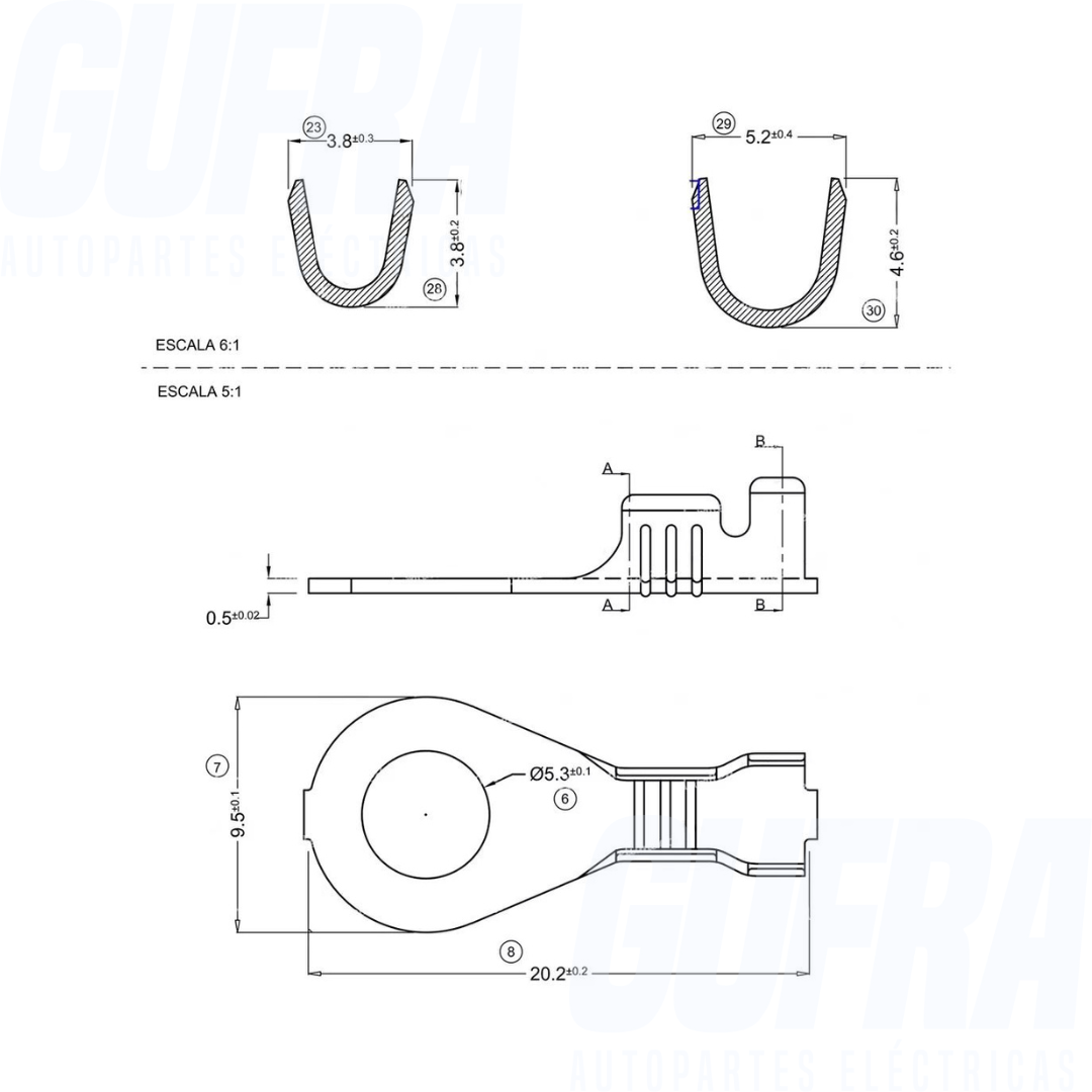 Inicio > Productos > TERMINALES DE INSTALACION > TERMINAL INSTALACION OJAL COMUN 5,3MM BOLSA X100